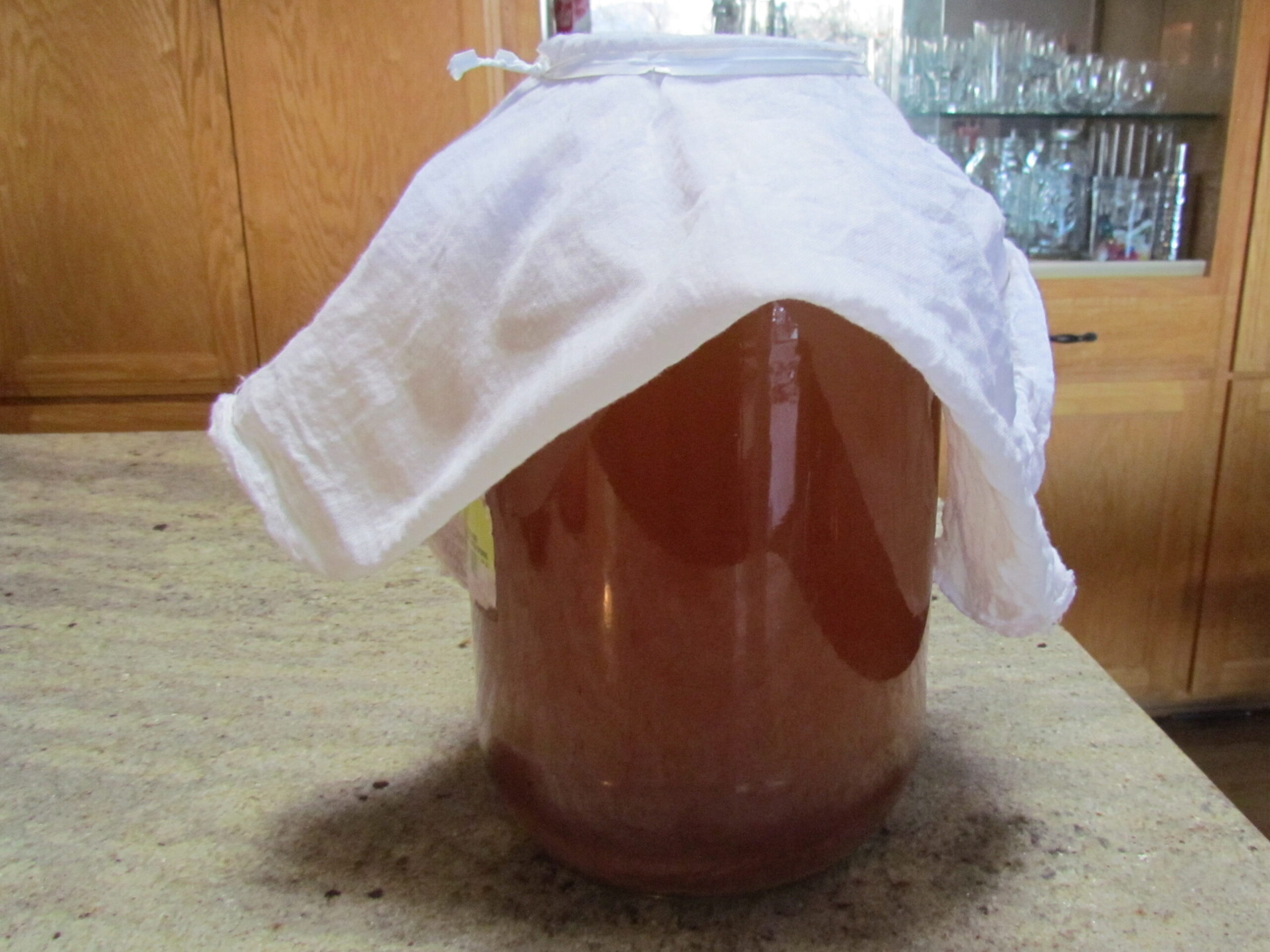 There are continuous kombucha brewing kits available for purchase online but I found I didn’t need it and I’m not sure I’ll ever want to get one. I found a very large pickle jar, you know the huge ones that are about a gallon and take about a year to eat? Ya, I bought that one. Then we ate all the pickles and washed it out. That pickle smell can be hard to get out so fill it with some baking soda and dish soap, put the lid on tight and flip it upside down for a day or two to help the smell leave the building, so to speak. If that’s too much work you can buy one online or at a local store or thrift shop.
