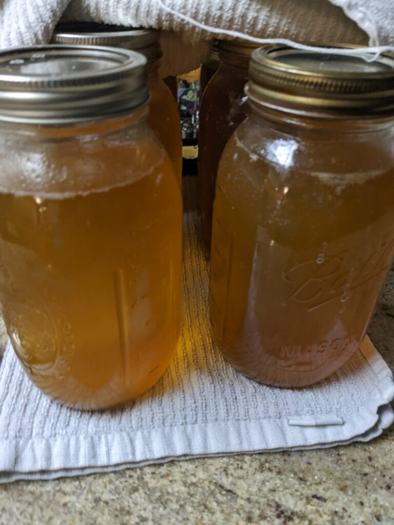 - Allow broth too cool and strain out the bones and scraps.